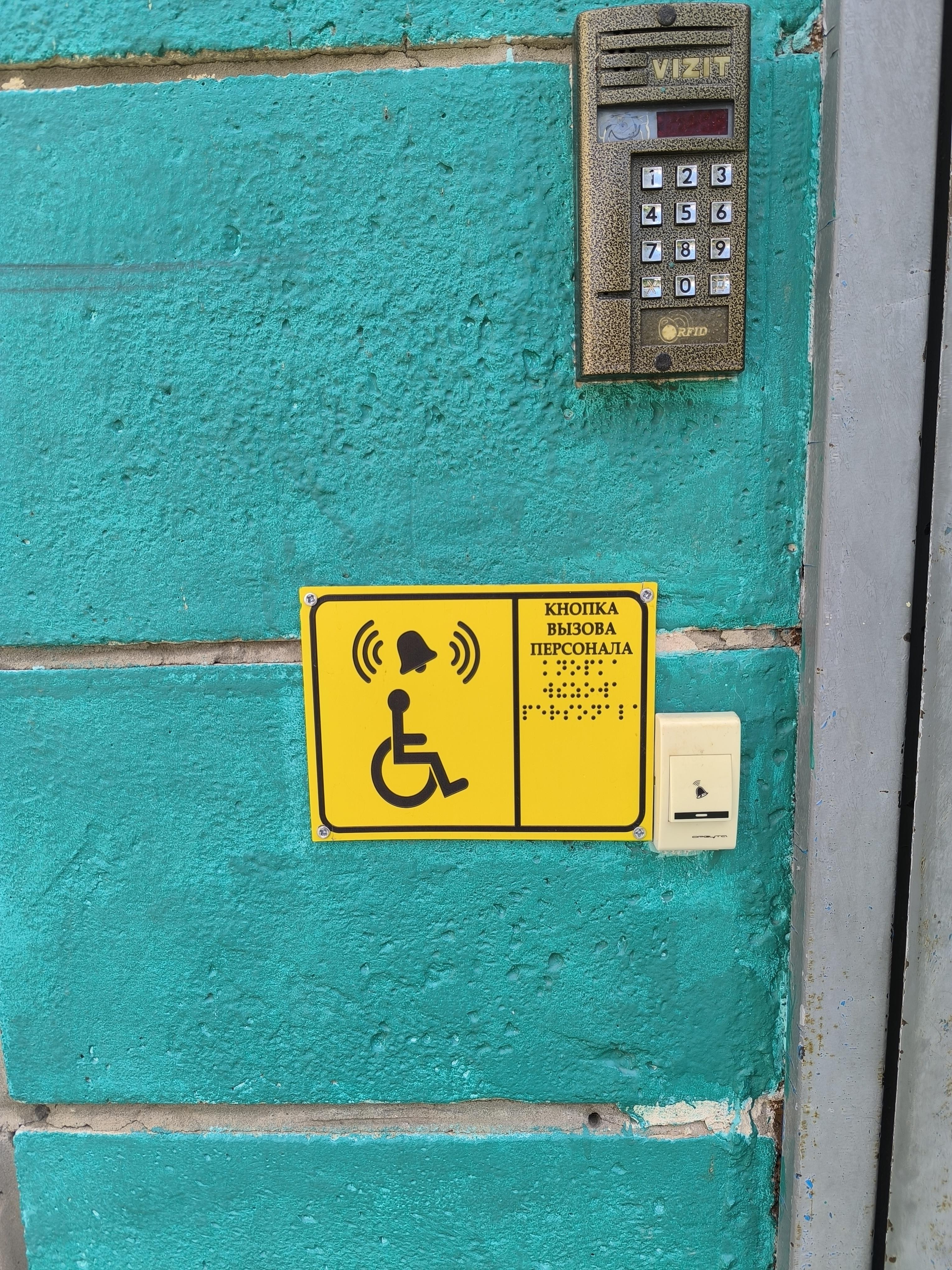 На входе в учреждение имеется табличка Брайля.